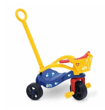 O Triciclo Peixinho com empurrador, proteção e cestinha garante controle absoluto aos pais, deixando assim a brincadeira mais segura. Como empurrador e a proteção são removíveis quando a criança pedalar sozinha é só removê-la. O triciclo traz um design diferenciado, com a temática de bichinho de estimação e com traços que propiciam maior conforto, bem como, uma melhor estabilidade e postura a criança. Possui um sistema de tração inovador, totalmente plástico e é fabricado com materiais de engenharia específicos para garantir a qualidade e a resistência do produto. Este produto também possibilita o desenvolvimento da coordenação motora, equilíbrio e atenção das crianças.
