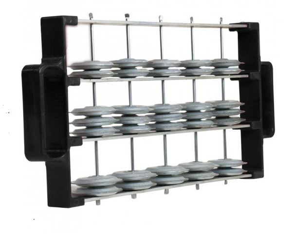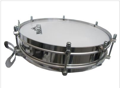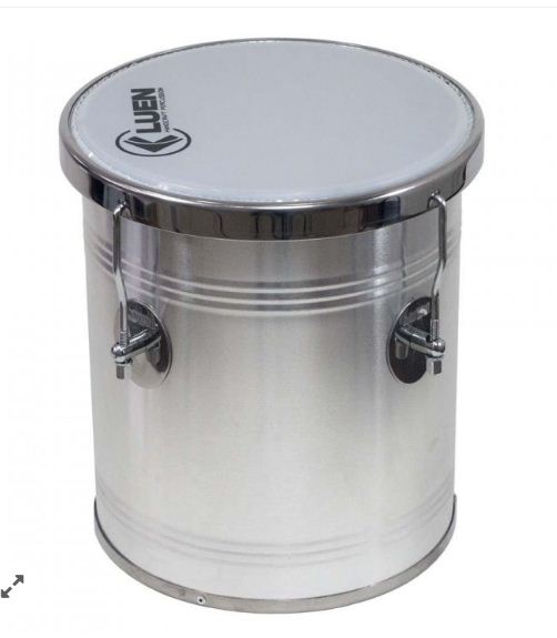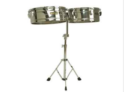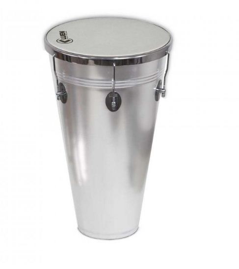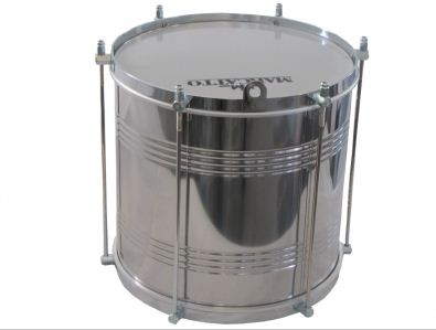 Timbal de inox com suporte, disponível nas seguintes medidas: