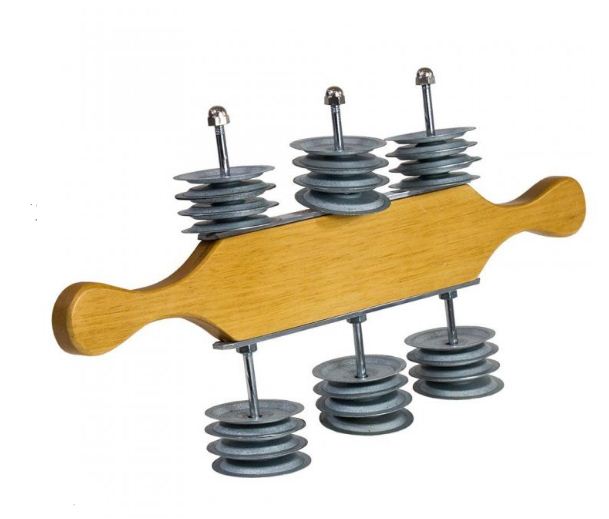 mm de altura, em madeira torneada, lixada e sem farpas, e talabarte de nylon (aproximadamente 0,2 mm x 1200 mm).