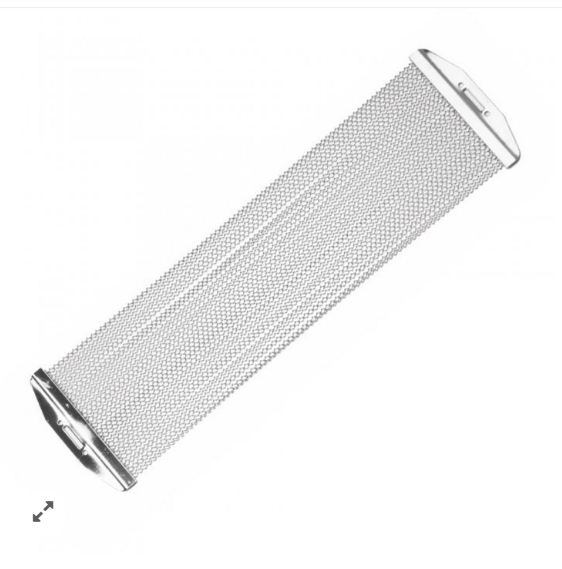 05- Um blak blak confeccionado em metal cromado, medindo aproximadamente 150 mm de comprimento.